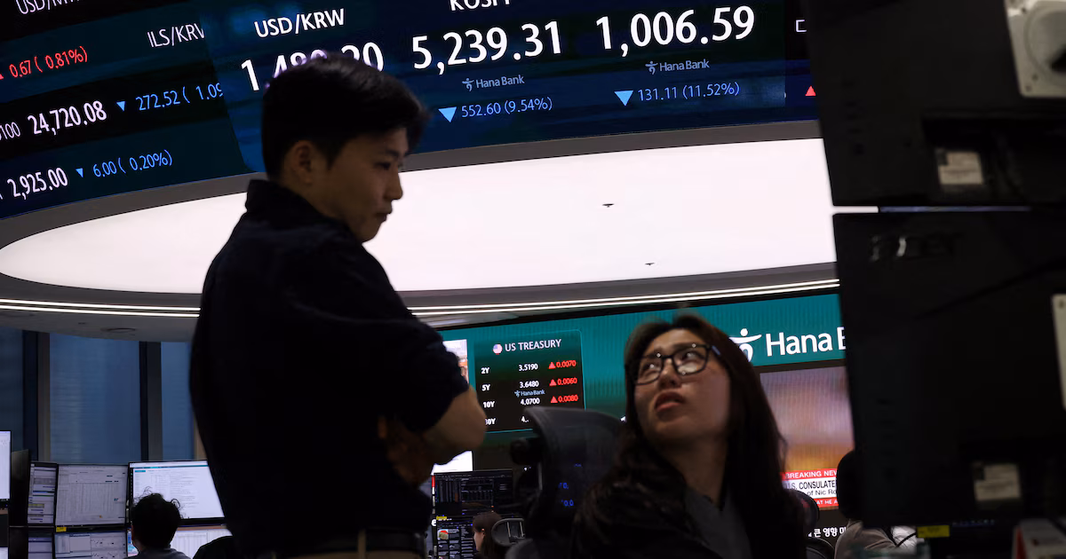 En las primeras horas de la sesión, el índice Kospi de Corea del Sur retrocedía 6,7%, y el Nikkei 225 de Tokio registraba una caída próxima al 5,8%, tras haber tocado pérdidas superiores al 6% al inicio de la jornada.