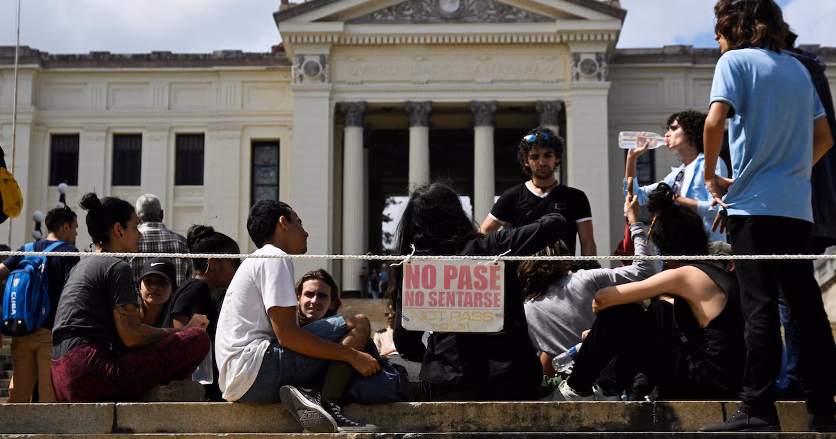 La protesta de un grupo de universitarios cubanos en la escalinata de la Universidad de La Habana generó esta semana un amplio despliegue de seguridad y restricciones que el colectivo denunció públicamente como un uso de “violencia” para limitar su manifestación.