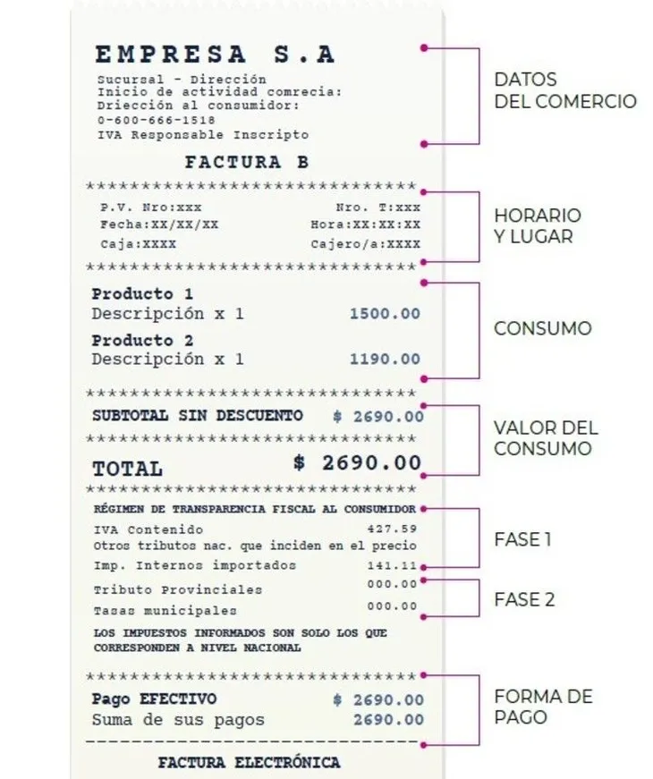 En el paquete fiscal aprobado en julio del 2024, el gobierno de Javier Milei creó el Régimen de Transparencia Fiscal al Consumidor. En el artículo 99, establece que quienes realicen ventas a consumidores finales “deberán indicar el importe neto sin la incidencia del Impuesto al Valor Agregado (IVA) y demás impuestos nacionales indirectos que incidan en los precios” junto con la leyenda “Precio sin impuestos”. También deberán efectuar la correspondiente “discriminación impositiva” en tickets.